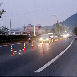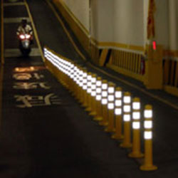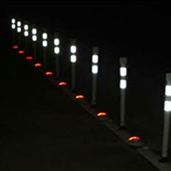 | تستخدم لتقسيم الحارة ومحاذاة منحنيات الطريق | أعمدة الترسيم في المساء | أعمدة ترسيم في الليل |