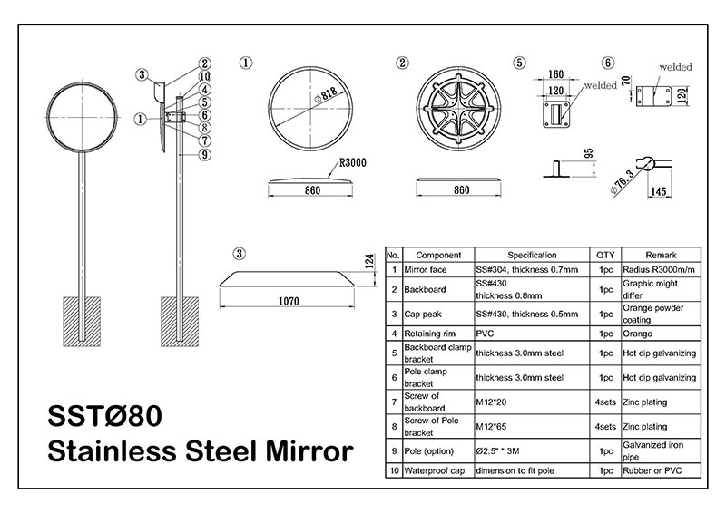 Konvexspiegel ist auch bekannt für Straßenkonvexspiegel, Verkehrssicherheitsspiegel, Verkehrssicherheitsspiegel, Verkehrsspiegel, Straßenspiegel, Sicherheitsspiegel, Sicherheitsspiegel.